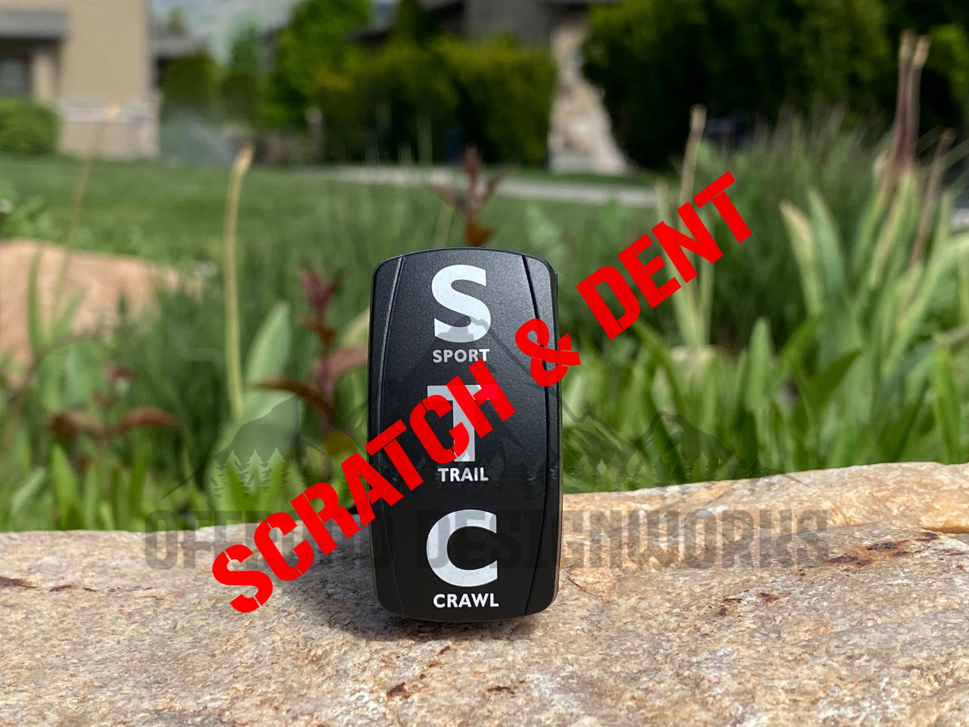 Scratch & Dent: These are brand new switches that did not make it through our quality screening for cosmetic reasons. They will either have a small scratch on the cover where you can see some of the blue light coming through or the black coating on the switch cover will be thin on the side where you can see some of the blue light coming through. Other than cosmetics, they pass all other quality tests. See images for examples of what they could look like.