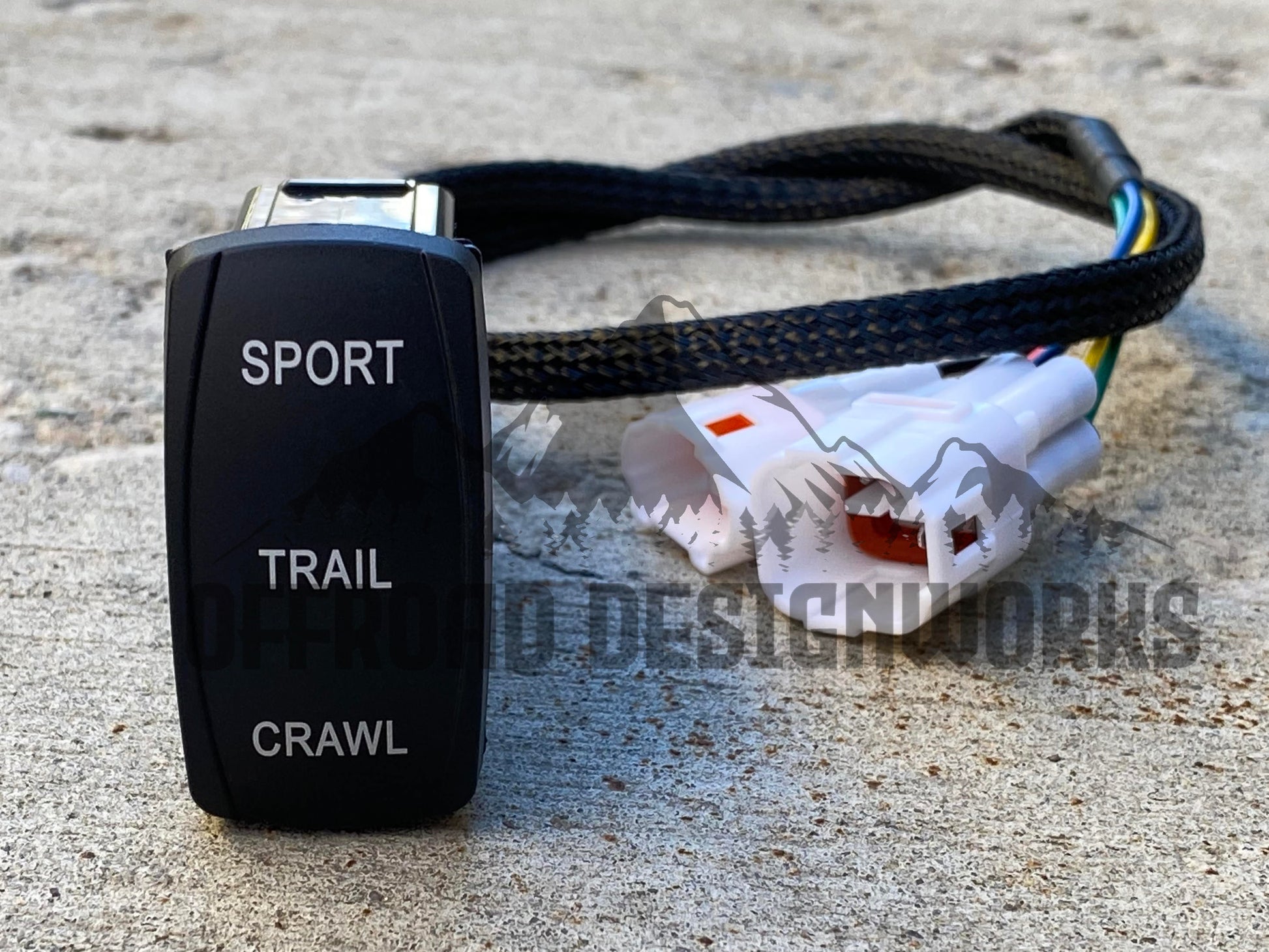 The Offroad Designworks drive mode switch for the 2021 through 2025 Yamaha RMAX 1000 allows you to quickly switch between SPORT, TRAIL, and CRAWL modes on your RMAX 1000, just like the Yamaha B4J-87280-10-00 switch does. All models of the RMAX (Base, R-Spec, XTR, Sport, and LE) are pre-wired for this switch so there is no wiring modifications needed. Completely plug and play!