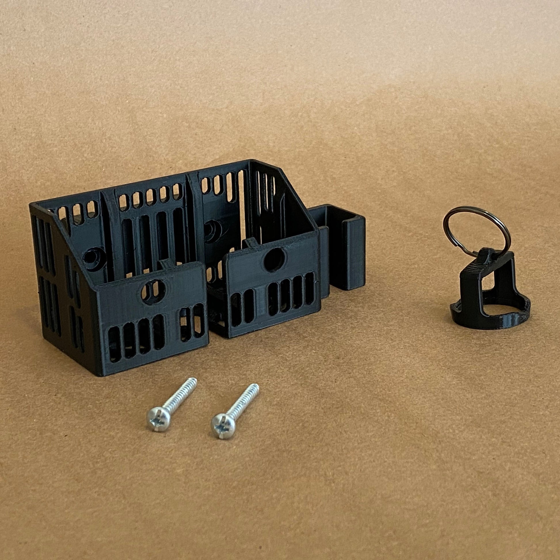 A wall mount for your TQ HPR50 4A charger. It has space behind it to wrap your power cable for a cleaner install. Since these chargers can get really warm during charging, it's designed with ventilation features to ensure that none of the heat given off by the charger is trapped, causing excessive heat. There is a feature to store your charge cable connector when not in use. It's 3D printed from PETG which is stronger and more temperature resistant than the common PLA material.